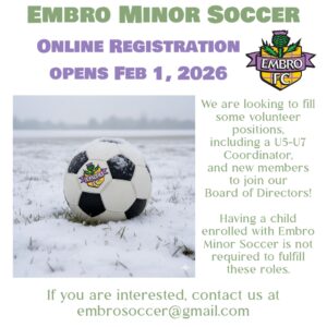 Registration Opens February 1, 2026 By embrominorsoccer | January 17, 2026 | 0 Posted in Uncategorized
